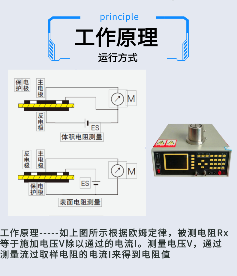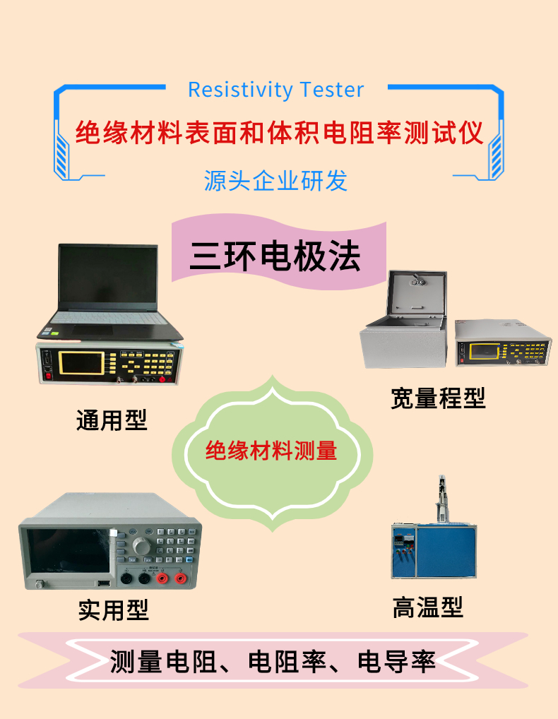 絕緣材料電阻率測試儀用于評估測量絕緣材料的電學性能,該系統可用于分析高溫條件下被測樣品的電阻和體電阻率,漏電流I等物理量,同時還可以通過系統自帶的軟件將這些物理量進行作圖分析。