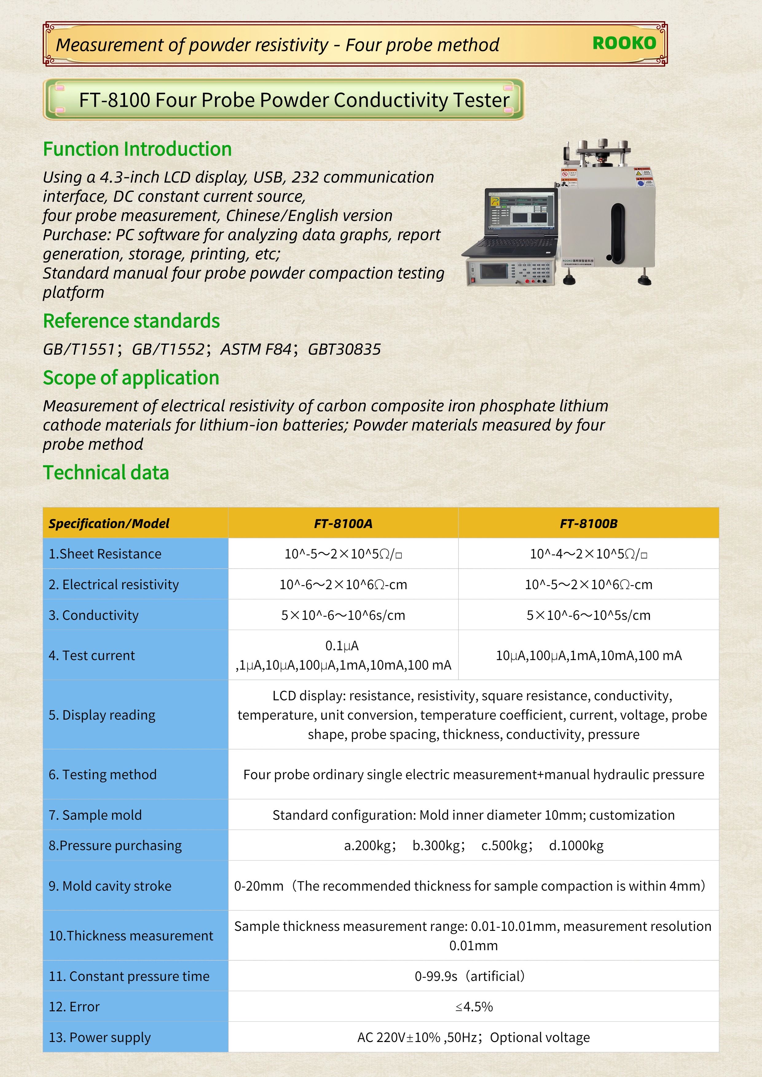 FT-8100 Four Probe Powder Conductivity Tester